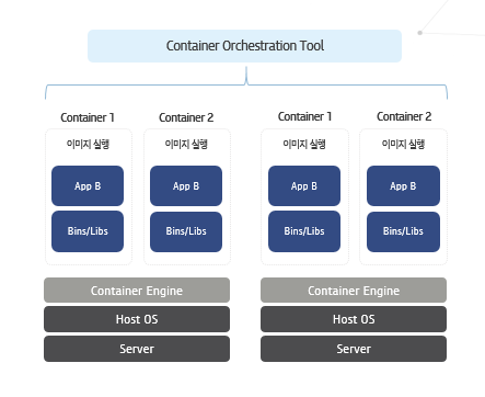 아래 이미지를 확인해 보시면 컨테이너 오케스트레인션 툴(Container Orchestration Tool)의