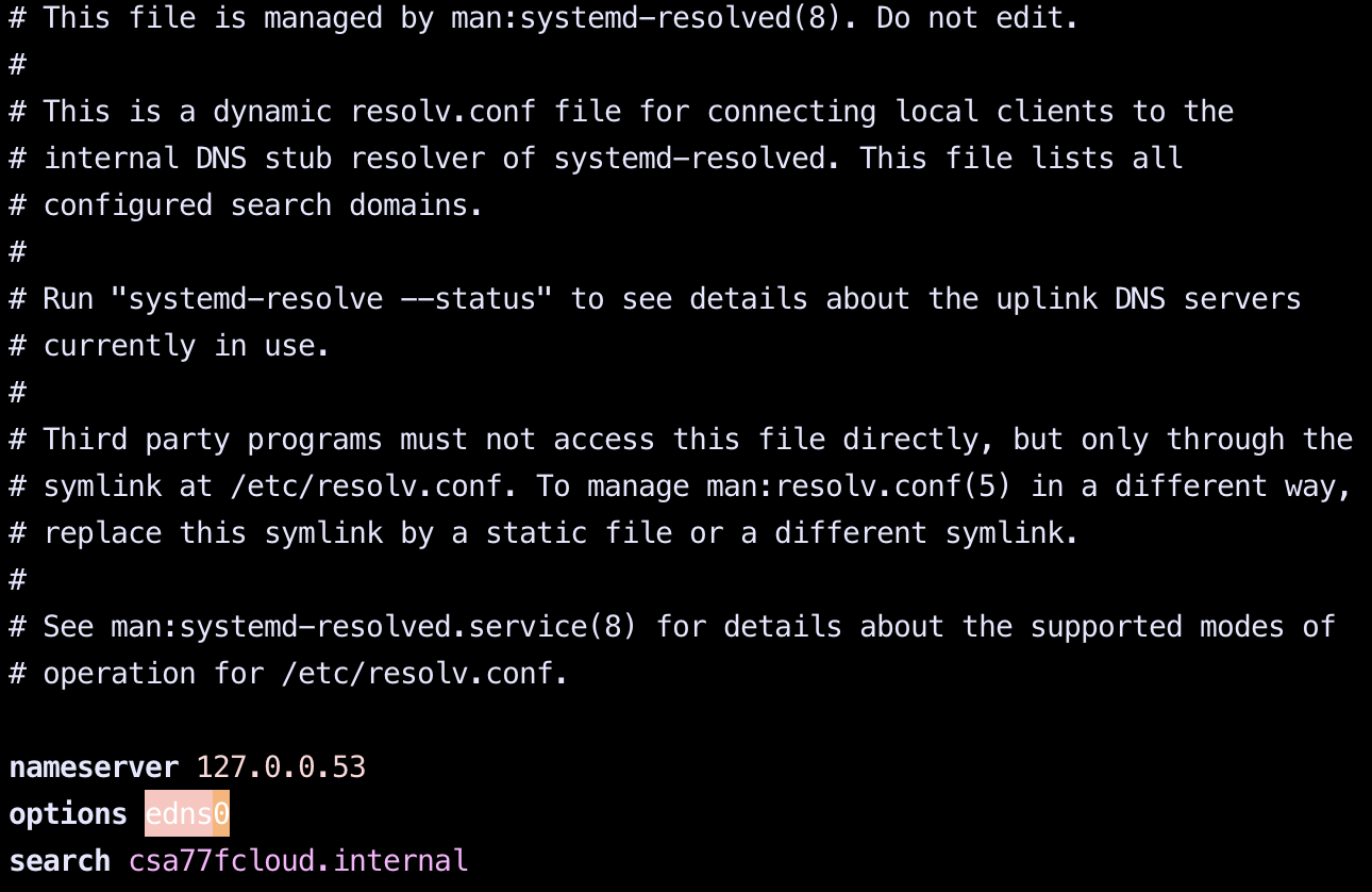 설치를 완료했다면, /etc/resolv.conf 파일을 열어봅시다.