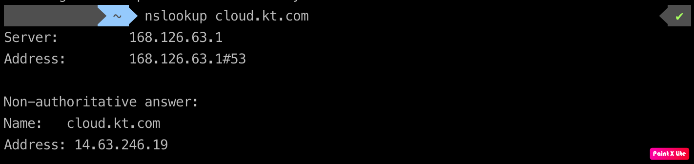 nslookup 명령어를 통해 DNS 설정이 잘 되었는지 확인해 봅니다.