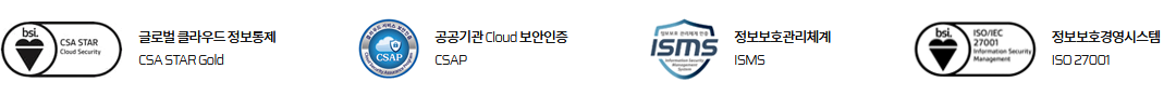 클라우드 보안에 대해서 이해하기 어렵다면, 공신력 있는 인증 현황을 보셔도 됩니다. CSP가 책임져야 할 영역을 잘 보호하고 있는지 주기적으로 심사 받아 인증 제도를 유지하는데요. KT Cloud의 경우, 글로벌 클라우드 정보통제(CSA STAR Gold) 및 정보보호관리체계 인증(ISMS) 등 6개의 인증을 획득하고 유지하고 있습니다.