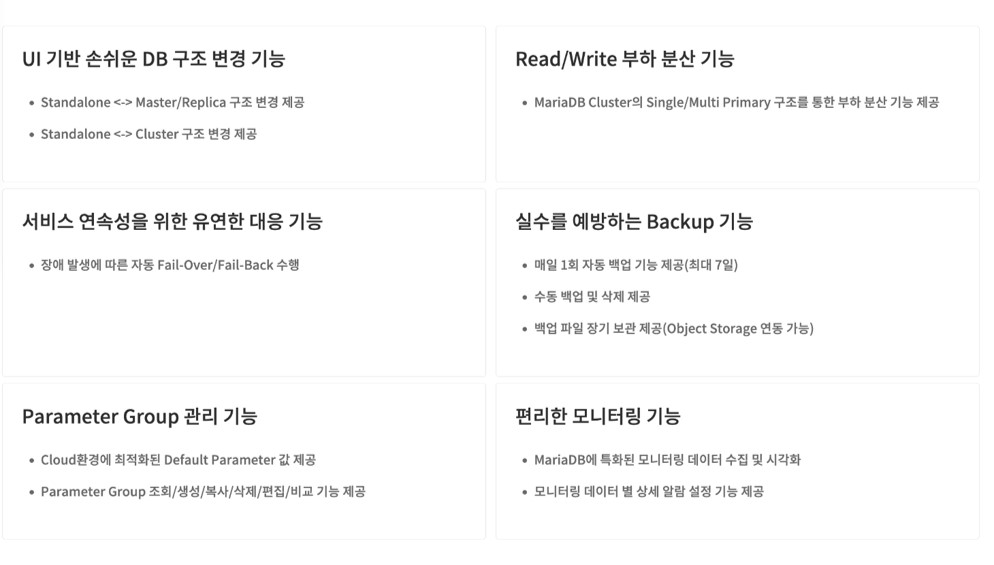 ◐ DBaaS for MariaDB 서비스 주요 기능