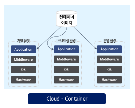 컨테이너 서비스는 개발/스테이지/운영 환경 구분 없이 컨테이너 이미지를 사용해