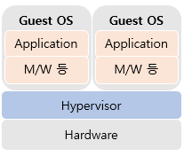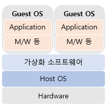 ㅇ 호스트 가상화: 가상화 S/W를 설치하기 위한 OS가 필요한 기술