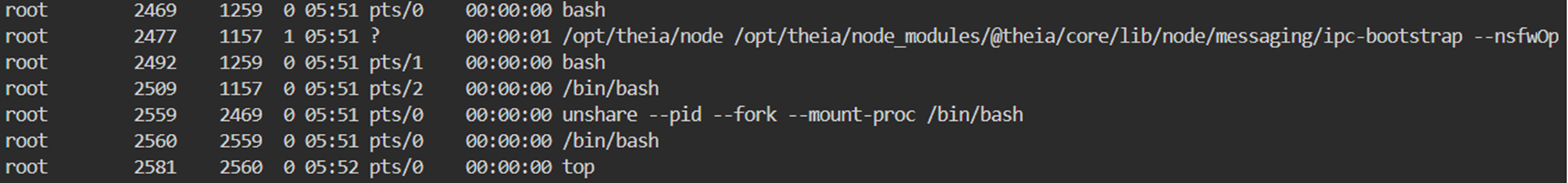 - unshare, /bin/bash, top Process 의 Id 를 확인합니다.
