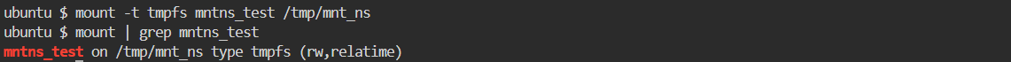 - unshare() System Call 을 호출한 Process 는 새로 생성된 Mount Namespace 에 속하게 되며, /tmp/mnt_ns mount 동작은 새로 생성된 Mount Namespace 에서 작동됩니다.