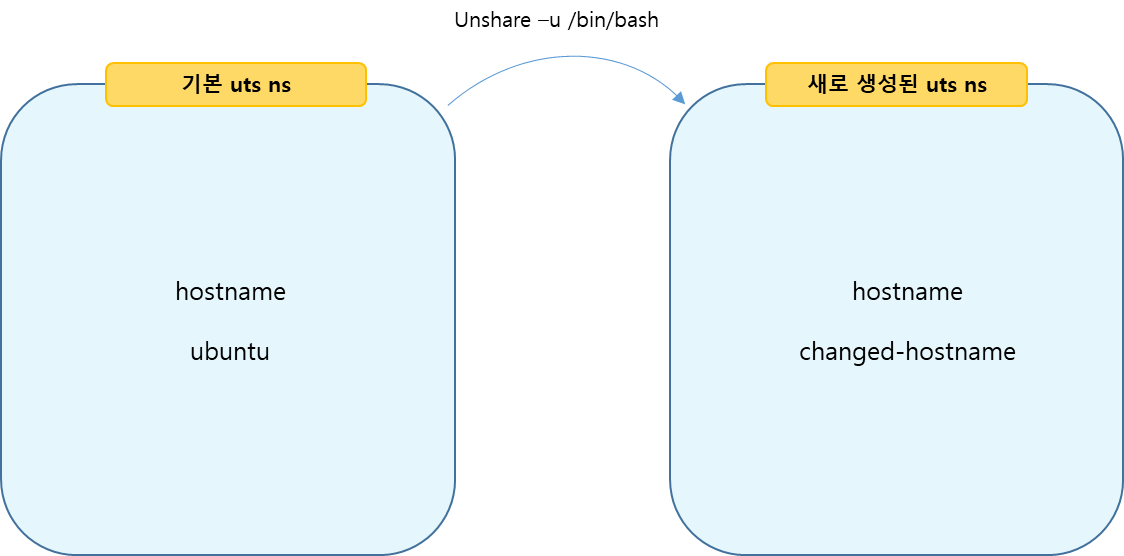 - unshare 를 통한 UTS Namespace 격리의 동작 방식을 위의 그림으로 이해해 보겠습니다.