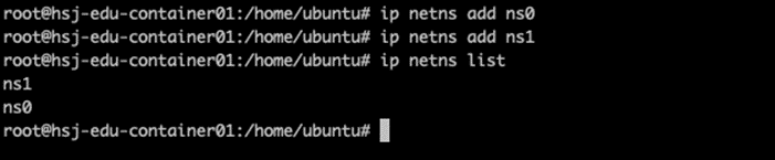- netns Option 을 사용하여 ns0, ns1 이름으로 두 개의 Network Namespace 를 생성합니다.