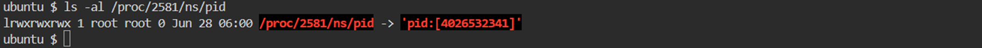 - 즉, 중첩된 PID Namespace 로 인하여 각각의 PID Namespace 상에서 Process (top) 의 Inode Number 를 비교해보면 ['4026532341'] 로 동일한 것을 알 수 있습니다.