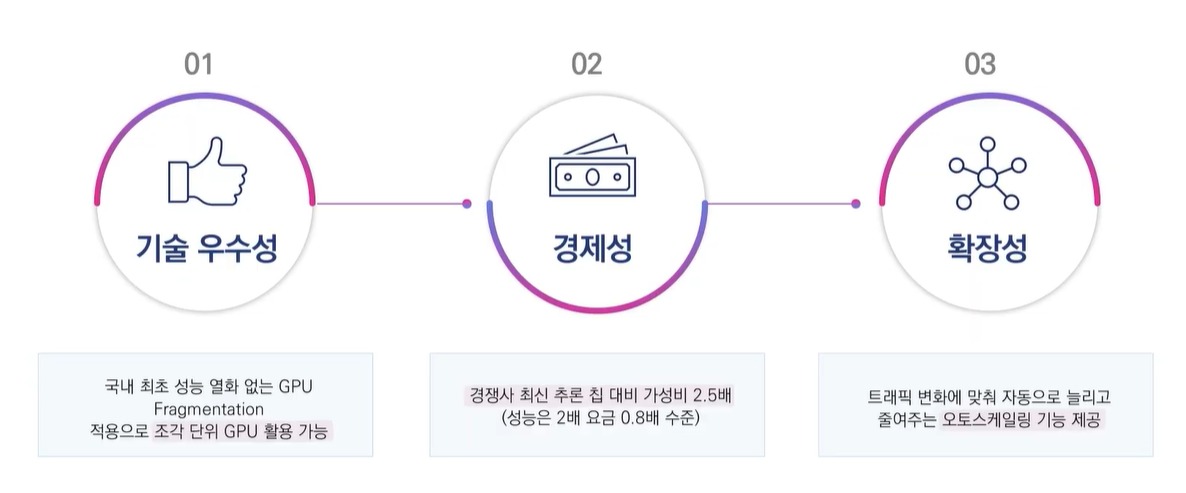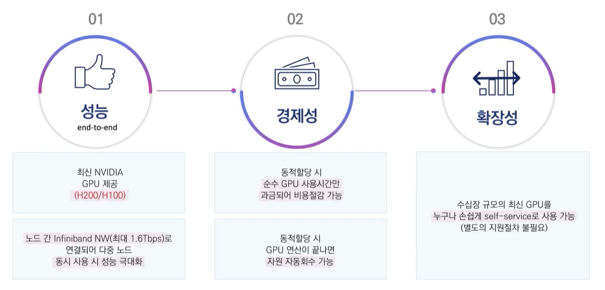더 나아가 AI 생태계 확장을 위해 AI 반도체 스타트업 리벨리온과 협력해 NPU as a Service를 제공하고 있으며, 추론 성능이 강화된 아톰 맥스 NPU를 도입할 계획입니다. 이를 통해 기업들은 AI 워크로드를 보다 효율적으로 처리할 수 있으며, 다양한 AI 서비스 운영의 최적화를 경험할 수 있습니다.