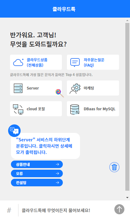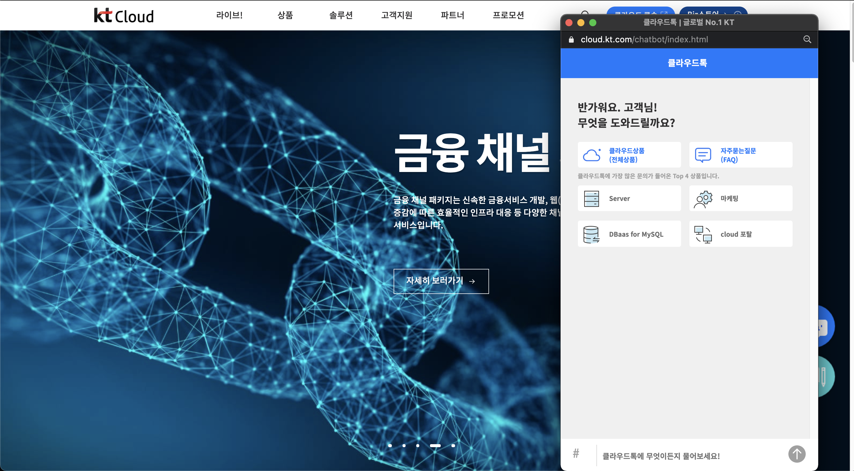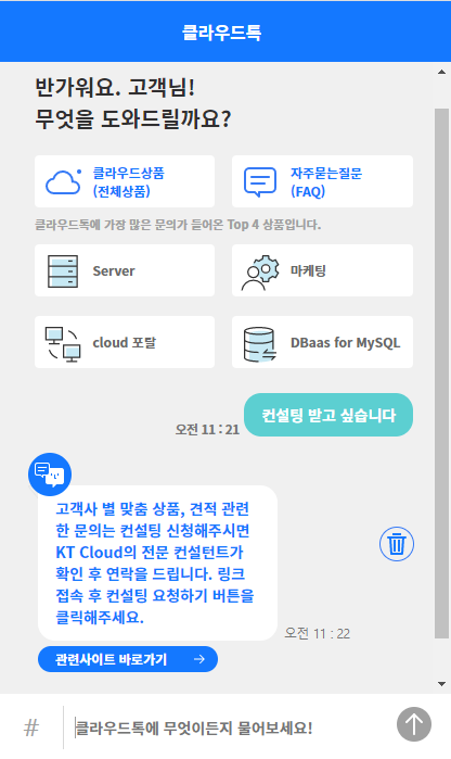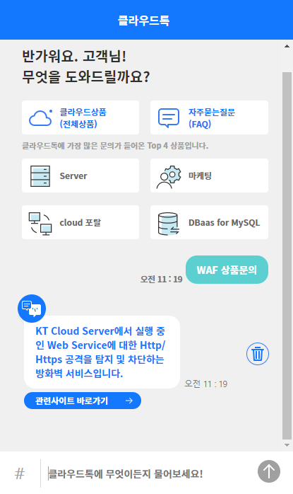 KT Cloud 고객의 궁금증에 대해 빠르고 편리하게 안내하고,