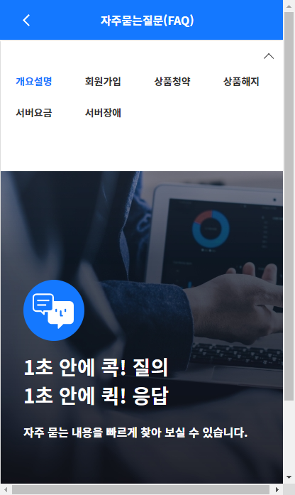 1-2) 자주 묻는 질문에 대한 항목을 5개의 탭으로 묶어 제공 중입니다