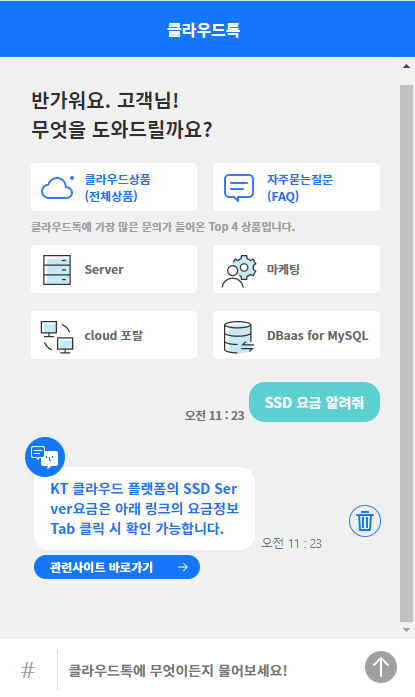 KT Cloud 고객의 궁금증에 대해 빠르고 편리하게 안내하고,