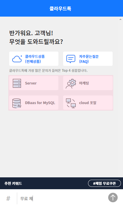 KT는 Cloud 고객의 궁금증을 바로 해결해 줄 수 있는 챗봇, “클라우드톡”을 1월 28일에 오픈 했습니다.