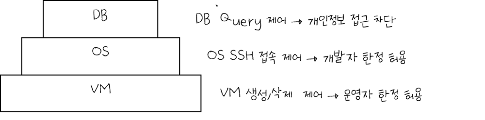 OS 접근제어는 개발자와 운영자의 역할을 나누거나, 각 VM별로 접속 사용자를 제한하여 감사 기능을 수행할 수 있도록 합니다.