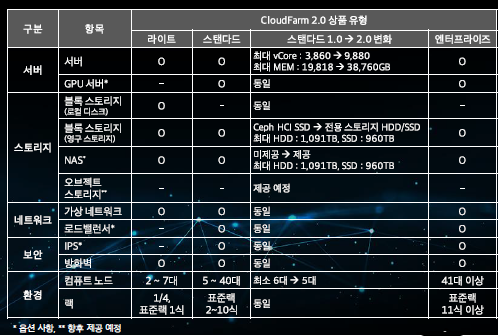 CloudFarm 2.0 상품 개선 항목_ 출처 : kt cloud