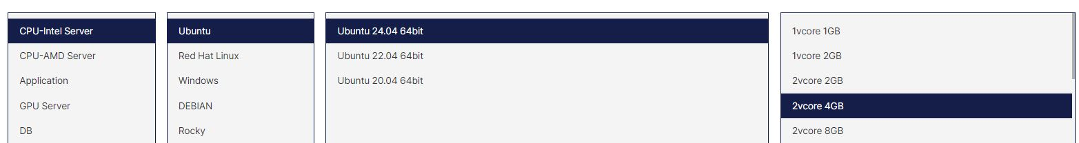 [ CPU-Intel Server] → [Ubuntu] → [Ubuntu 24.04 64bit] → [2Core 4GB]