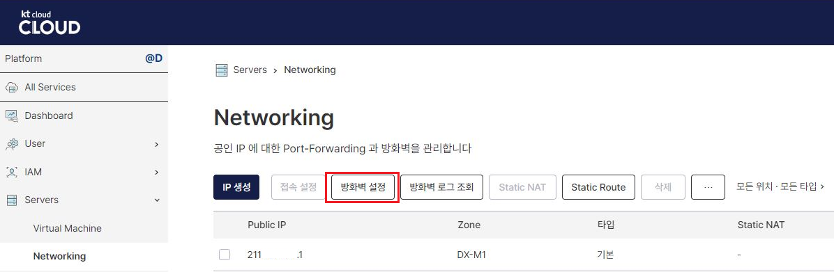 먼저 VM 접속 설정 하실 때와 동일하게 ‘Public IP' 생성해보겠습니다.