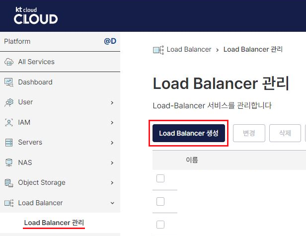 kt cloud Console 화면으로 접속해서 LB를 하나 만들어 줄게요.