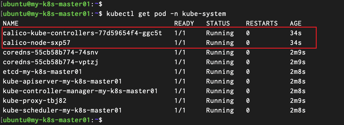 Calico 관련 포드가 잘 배포 되었는지 조회해볼까요?