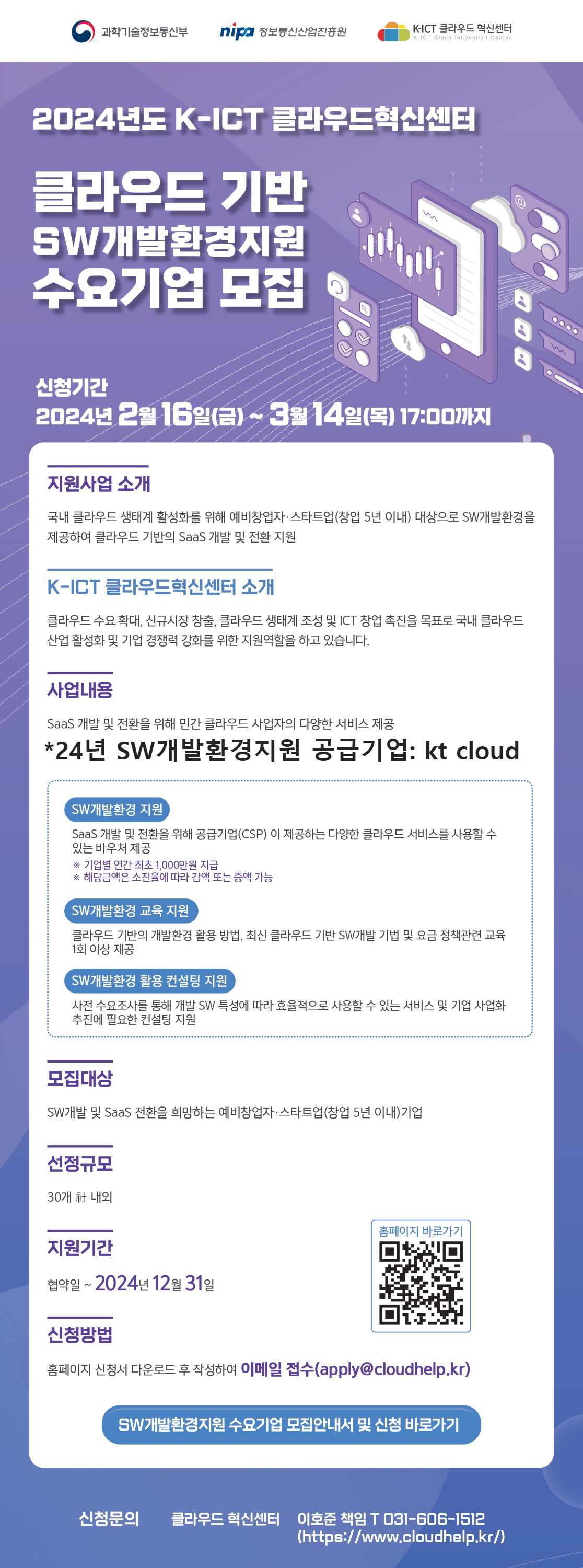 클라우드 기반 SW개발환경지원 수요기업 모집을 진행하고 있습니다.