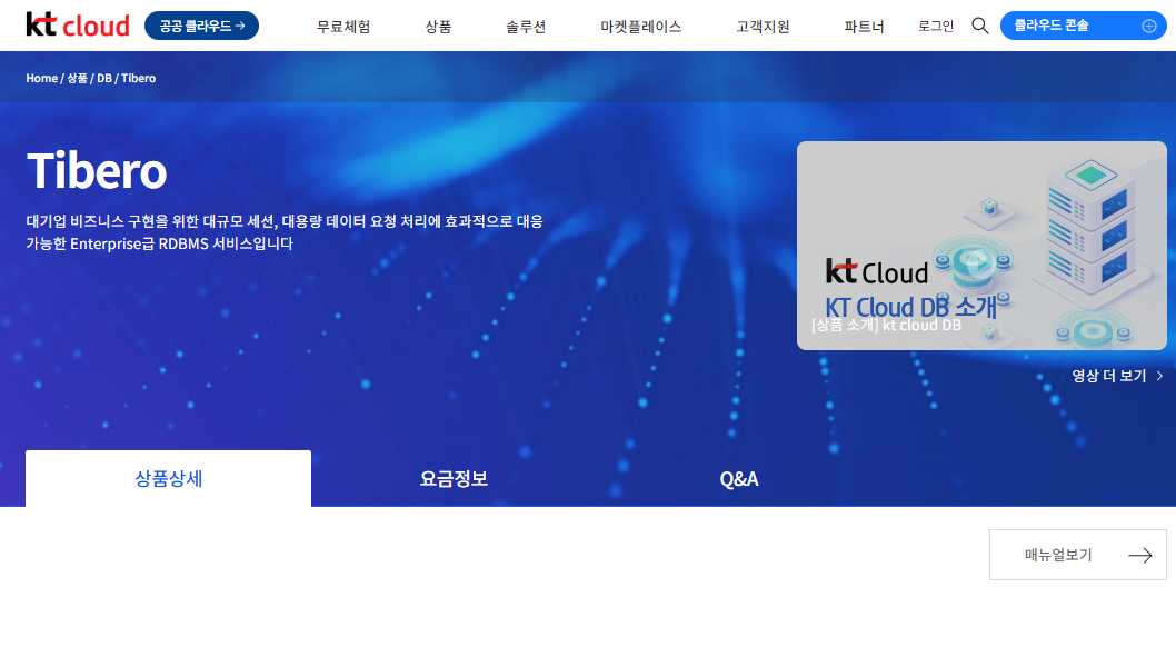 상품은 kt cloud 민간 포털 사이트에서 (https://cloud.kt.com/product/db/tibero/) 확인이 가능하다.