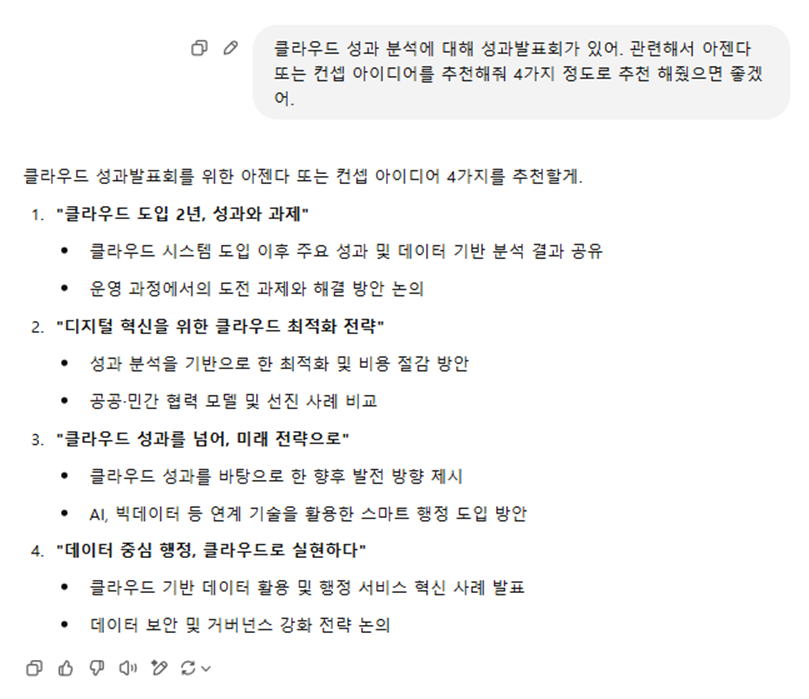 #1. chat GPT로 정리한 업무 아이디어 | #2. ai로 만든 kt cloud 고객담당 이미지 |