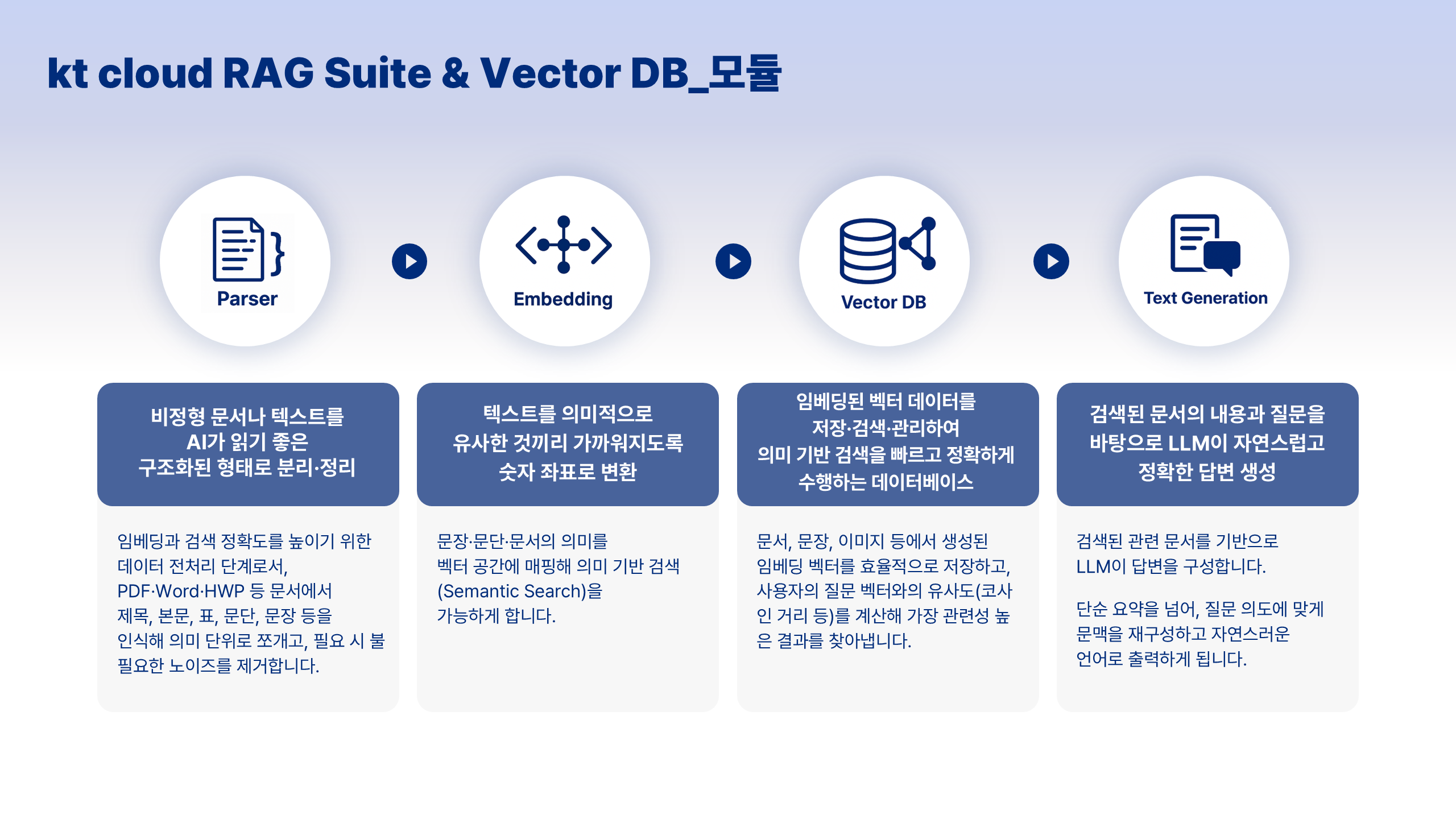 - RAG Suite과 Vector DB를 기반으로 기업 내 지식 활용 구조를 정교하게 설계할 수 있고,