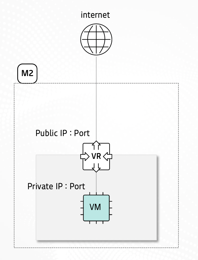 ## Public IP:Port와 VM의 Private IP:Port를 연결해서, 외부와 통신이 가능하도록 설정