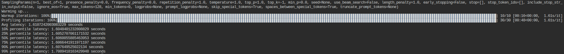 최종 Throughput은 15.48 requests/s, 6402.76 tokens/s 으로 측정되었습니다. A100의 결과값과 유사한 수준으로, 이 정도면 정말 많이 최적화된 것 같습니다.