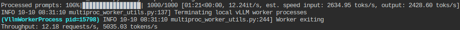 12.18 requests/s → 12.81 requests/s , 5035.03 tokens/s → 5296.49 tokens/s