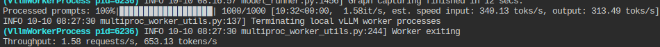 평균 Throughput는 1.58 requests/s, 653.13 tokens/s 입니다.