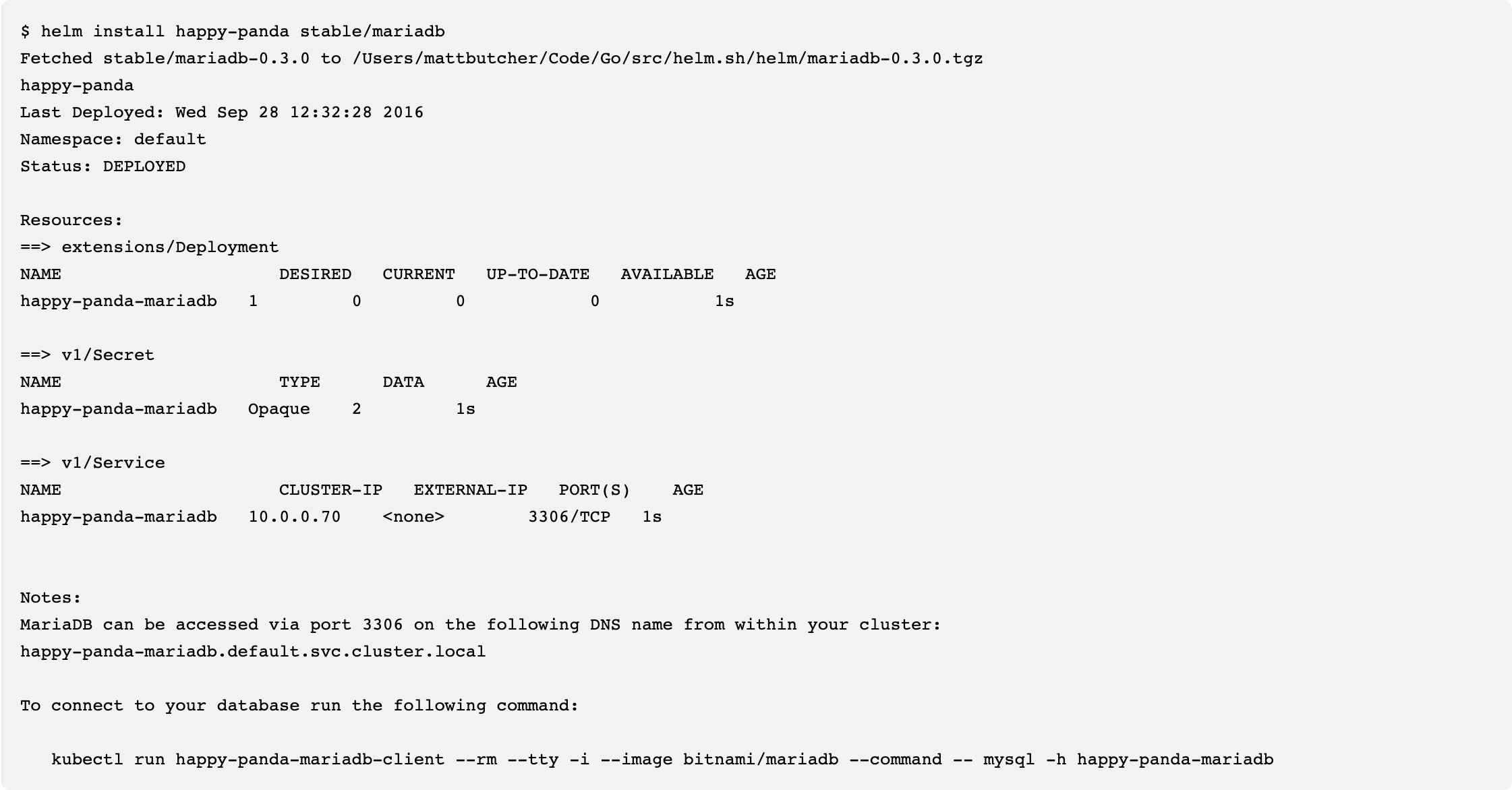 아래 이미지와 같이 mariadb를 기동하기 위해 필요한 리소스인 Deployment, Secret, Service가 생성되는 것을 볼 수 있으며, mariadb가 설치되면서 새로운 Release가 만들어지게 됩니다.
