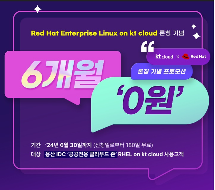 📌 ‘RHEL on kt cloud’ 를 도입 할 수 있는 절호 찬스 ... ' O원 ' 제공 프로모션 (6개월 간)
