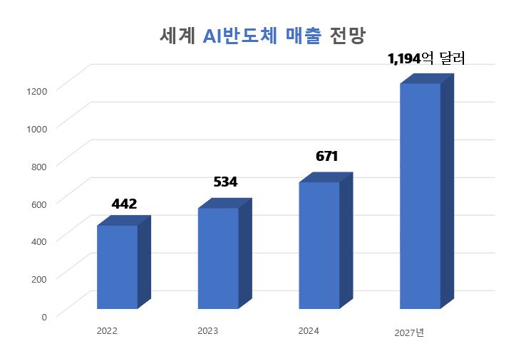 보고서에 따르면, 올해 전 세계 AI 반도체 매출은