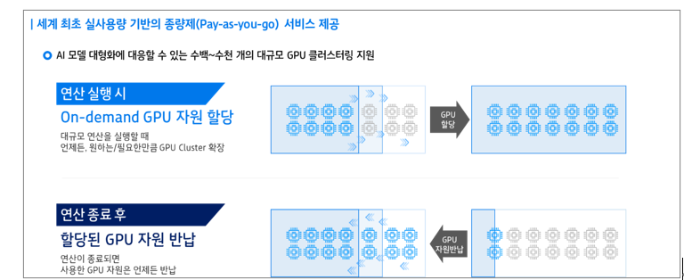 대규모 클러스터링이 가능한 완전 종량제 GPU서비스 HAC상품이 결합된