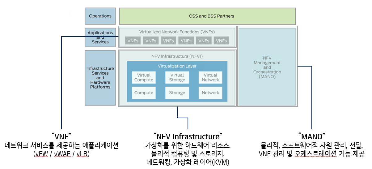 이때, 중요한 것은 ‘소프트웨어 정의’를 통해 유연성을 증대시킬 수 있으며, 특정 벤더에 종속되지 않은 표준에 따라 프로그래밍 가능성을 확보 가능하다는 것에 있습니다.
