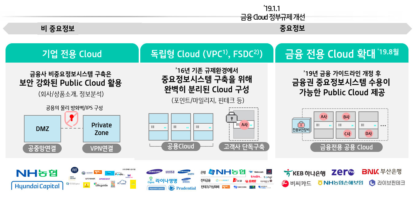 국내 금융권에서는 비중요 정보를 다루는 시스템에 한정하여 Public Cloud를 이용해왔는데요.