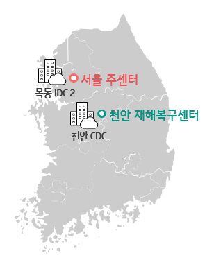 KT 금융 클라우드는 서울 주센터와 천안 재해복구센터로 DR 구조를 제공하고 있습니다.
