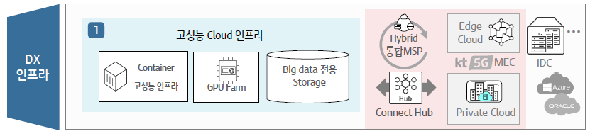 KT DX 플랫폼의 핵심은 고성능, 고사양, 고대역의 인프라를 제공한다는 점입니다.