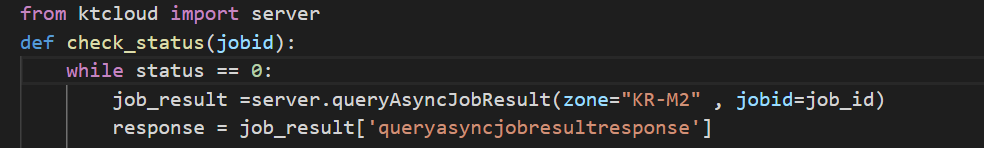 라이브러리에 포함된 함수들을 통해 KT Cloud의 자원들을 제어합니다.