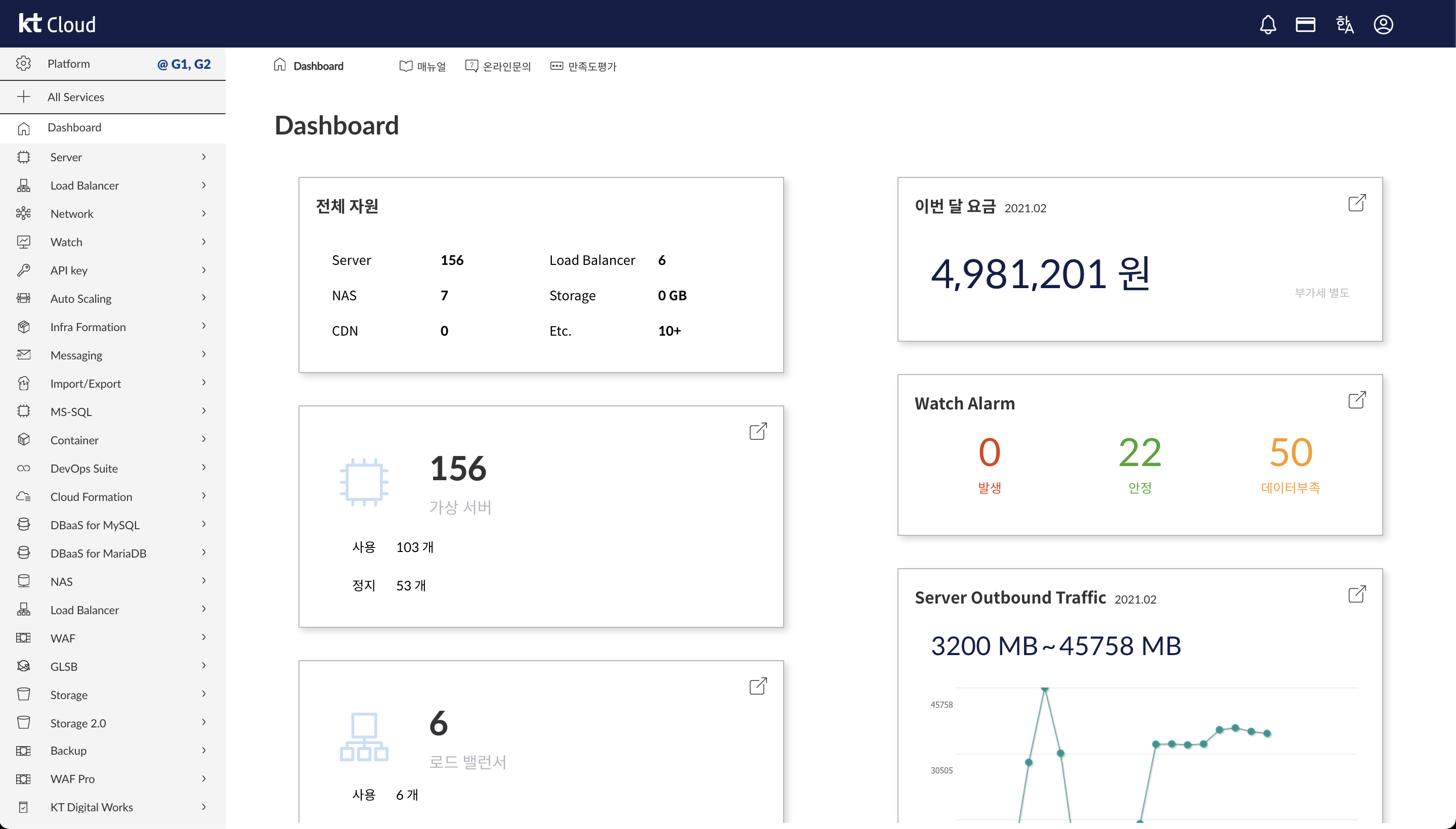 KT Cloud는 웹 기반의 GUI 형식 관리 도구인 클라우드 콘솔을 제공합니다.