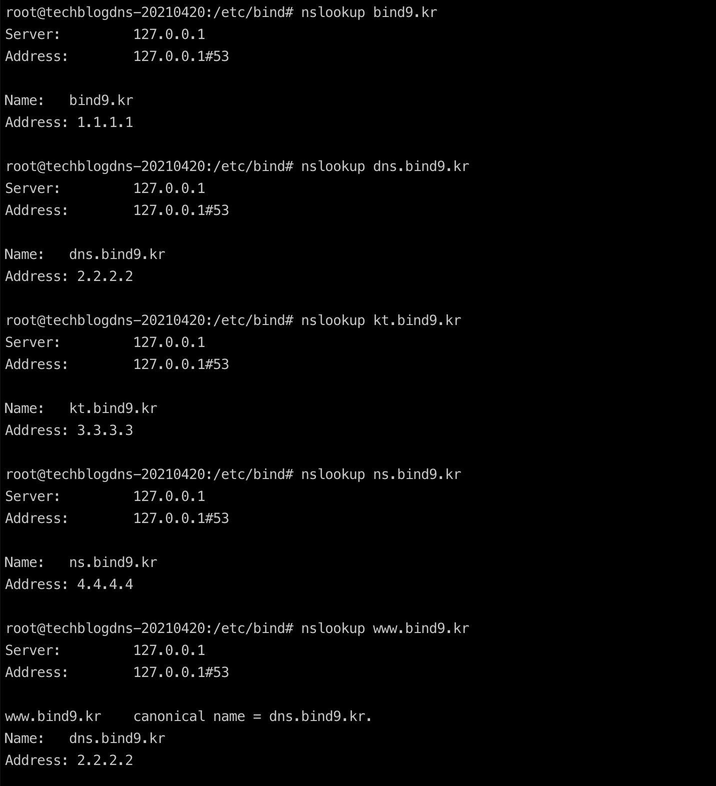 A 레코드부터 마지막 CNAME 레코드까지 매우 잘 동작하는 것을 확인할 수 있습니다!