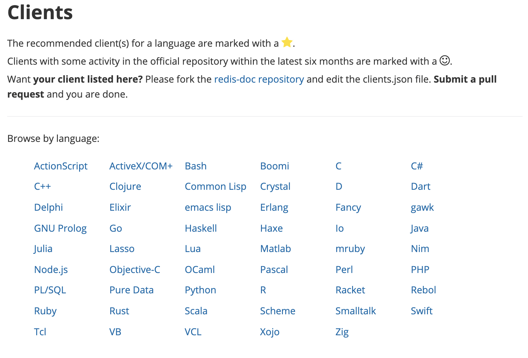 언어 별 Client Library 목록 >> https://redis.io/clients