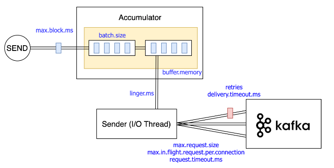 여기서 linger.ms는 suboptimal batches 문제를 일으키기 때문에, Bug fix가 되었고 새로운 배치를 만드는 데는 영향을 주지 않게 됩니다.