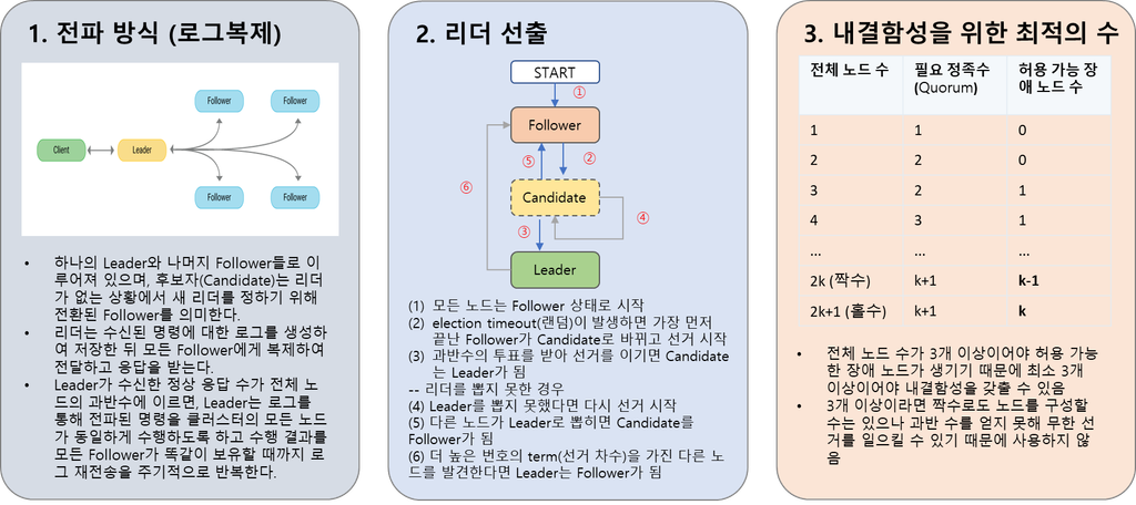Raft 알고리즘의 특징은 아래 3가지로 정리할 수 있습니다.