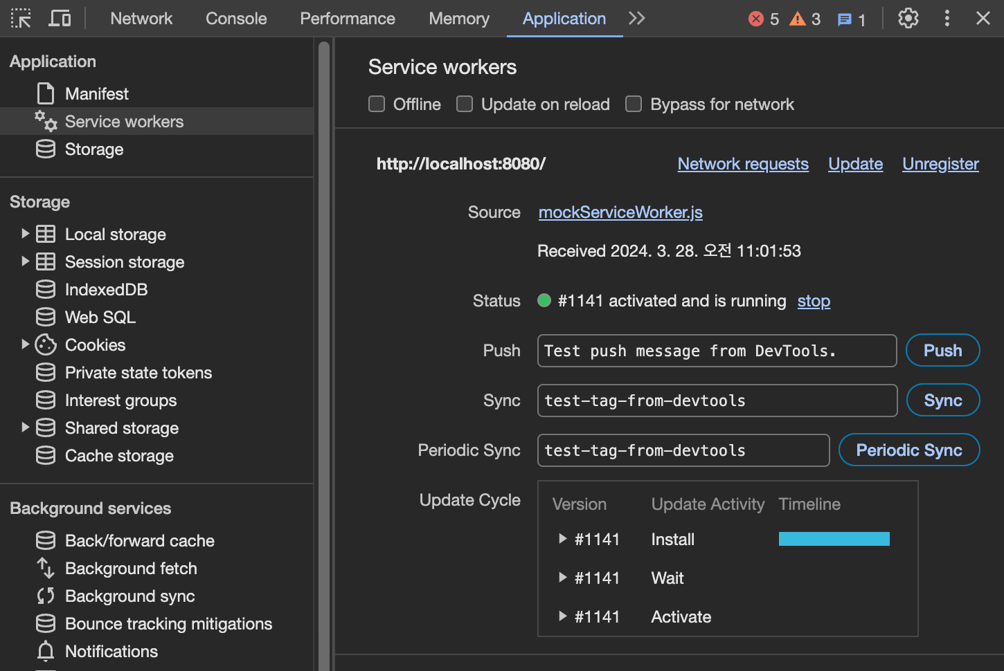 즉, Service Worker를 중간자 역할을 하여 클라이언트 요청에 대하여 예상되는 API 응답을 네트워크 레벨에서 Mocking 하여 제공할 수 있습니다.
