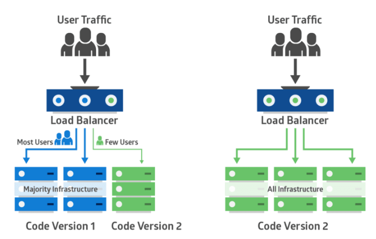 트래픽을 새로운 버전으로 전환하기 전에 두 환경에서 모두 서비스를 준비해두고,