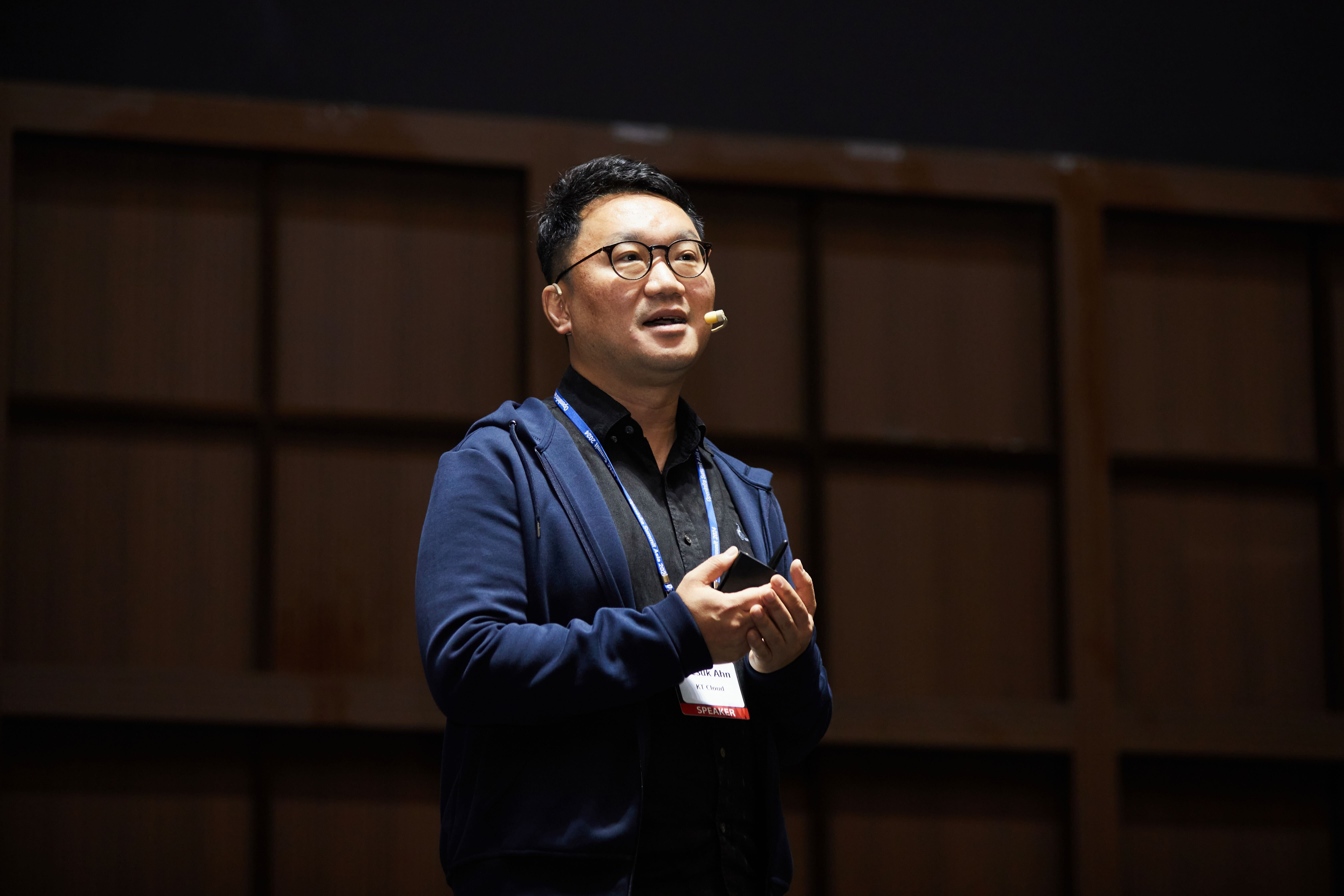 4일 키노트 연사로 나선 kt cloud 안재석 본부장은 국내 오픈스택 커뮤니티를 설립해 다양한 글로벌 오픈소스 SW프로젝트와 쿠버네티스 기술 생태계를 이끌어 왔으며, 지난 7월 kt cloud에 기술본부장으로 합류했다. 안 본부장은 ‘From Dependency to Dominance: Reinventing Our Cloud Paradigm(kt cloud 패러다임의 변화: 의존성을 벗어나 주도적인 기술 리더로)’을 주제로 키노트 강연을 진행, 큰 주목을 받았다.
