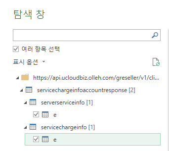 - API 호출 URL 입력 후 “확인” 클릭 > “여러 항목 선택” 체크 후 하단 체크 박스 모두 체크 후 “다음으로 로드”