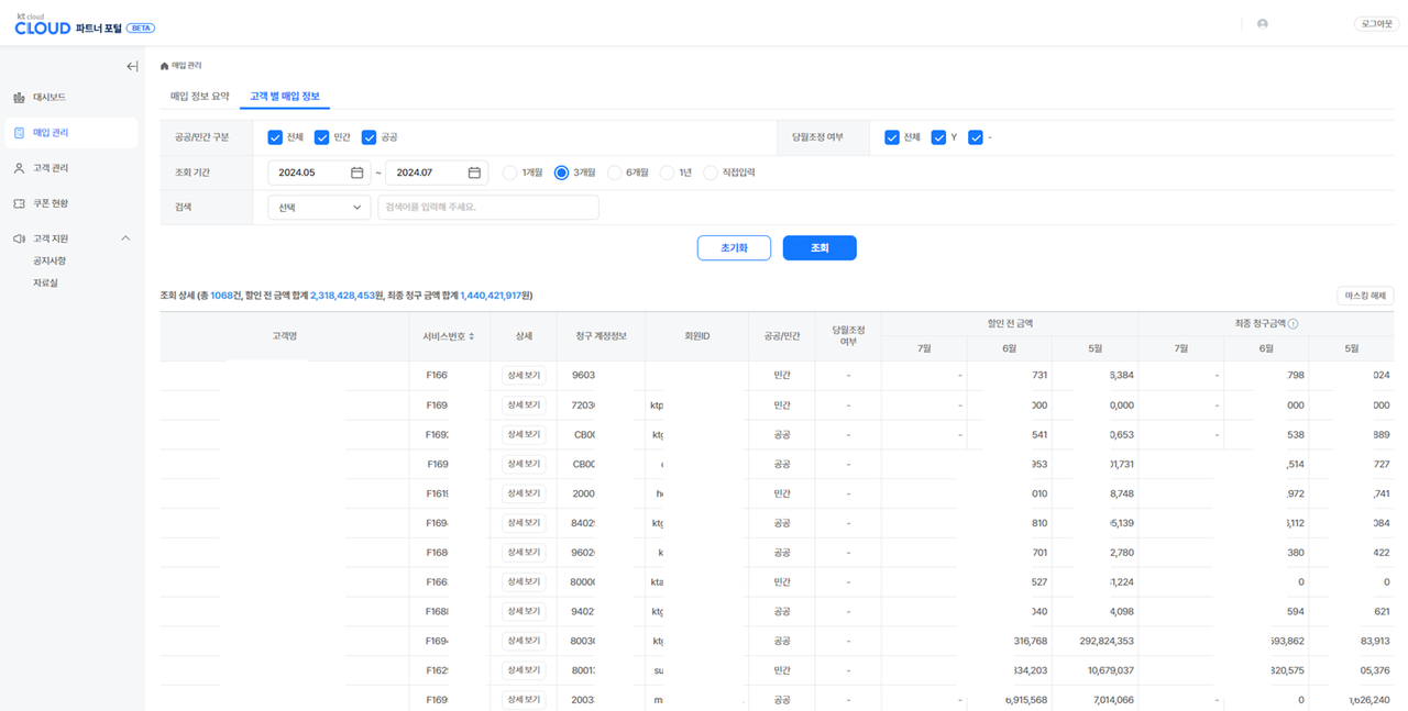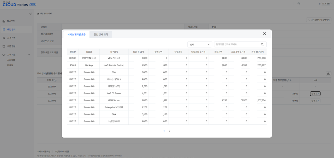 만약 CMP 개발까지 추진하기엔 아직 규모도 작고, 사업 건도 작은 파트너사라면 한계를 느낄 수 밖에 없습니다. 하지만 실망하지 마세요! kt cloud는 파트너 포털을 통해 더 쉽게 이러한 요금 정보 등을 확인할 수 있도록 제공하고 있습니다.